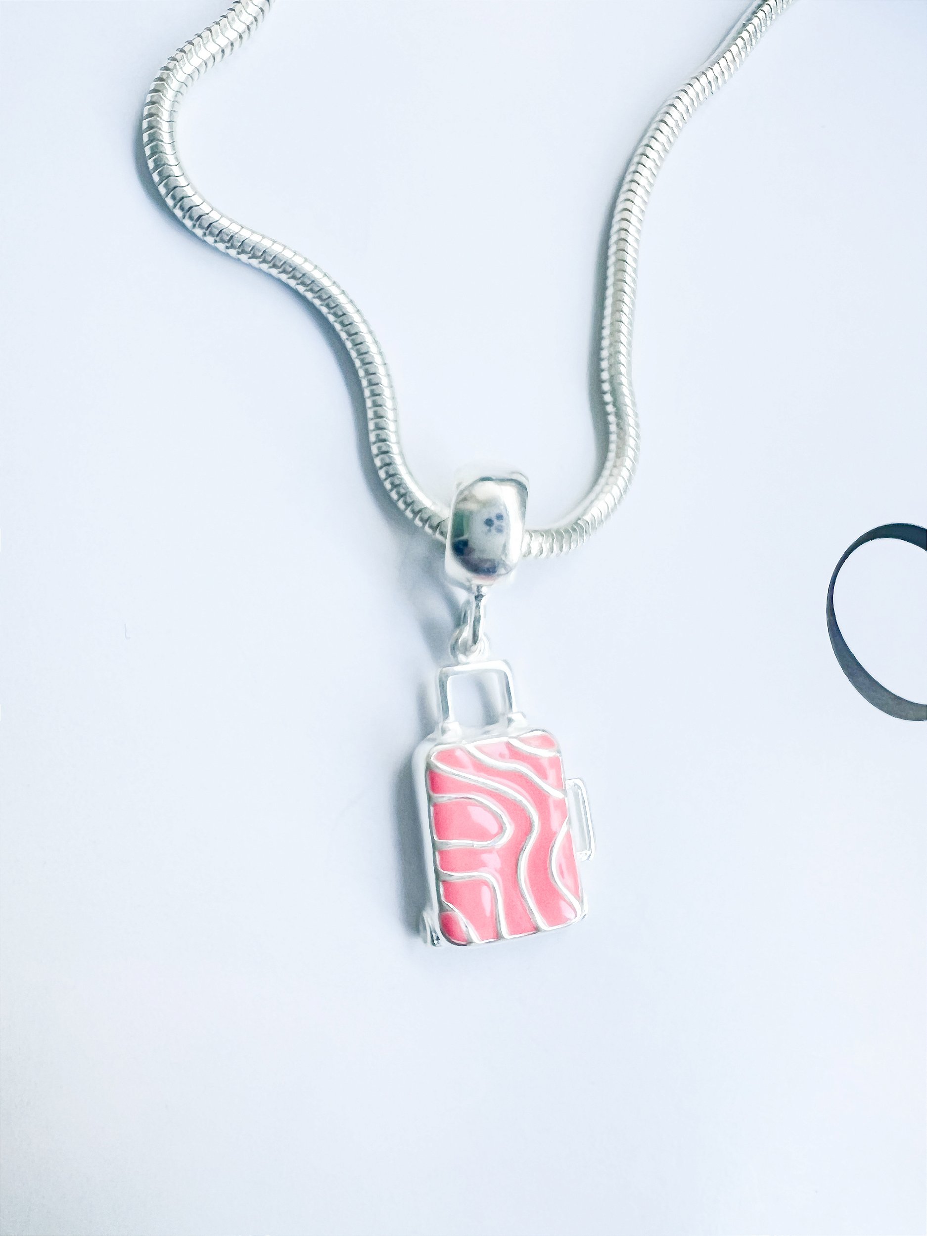 Berloque Mala de Viagem Rosa Prata 925