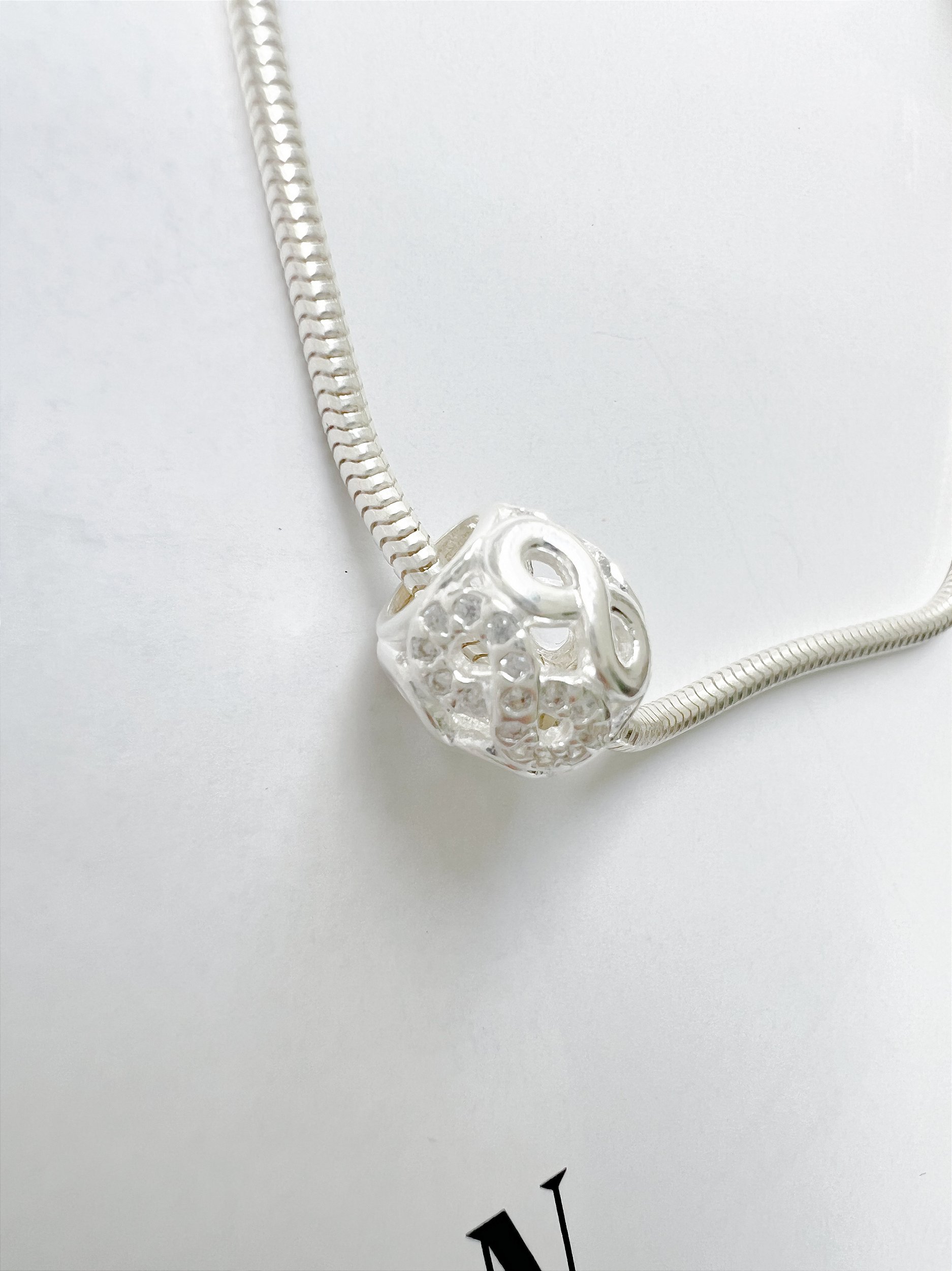 Berloque Separador Infinito com detalhes em zircônias na Prata 925