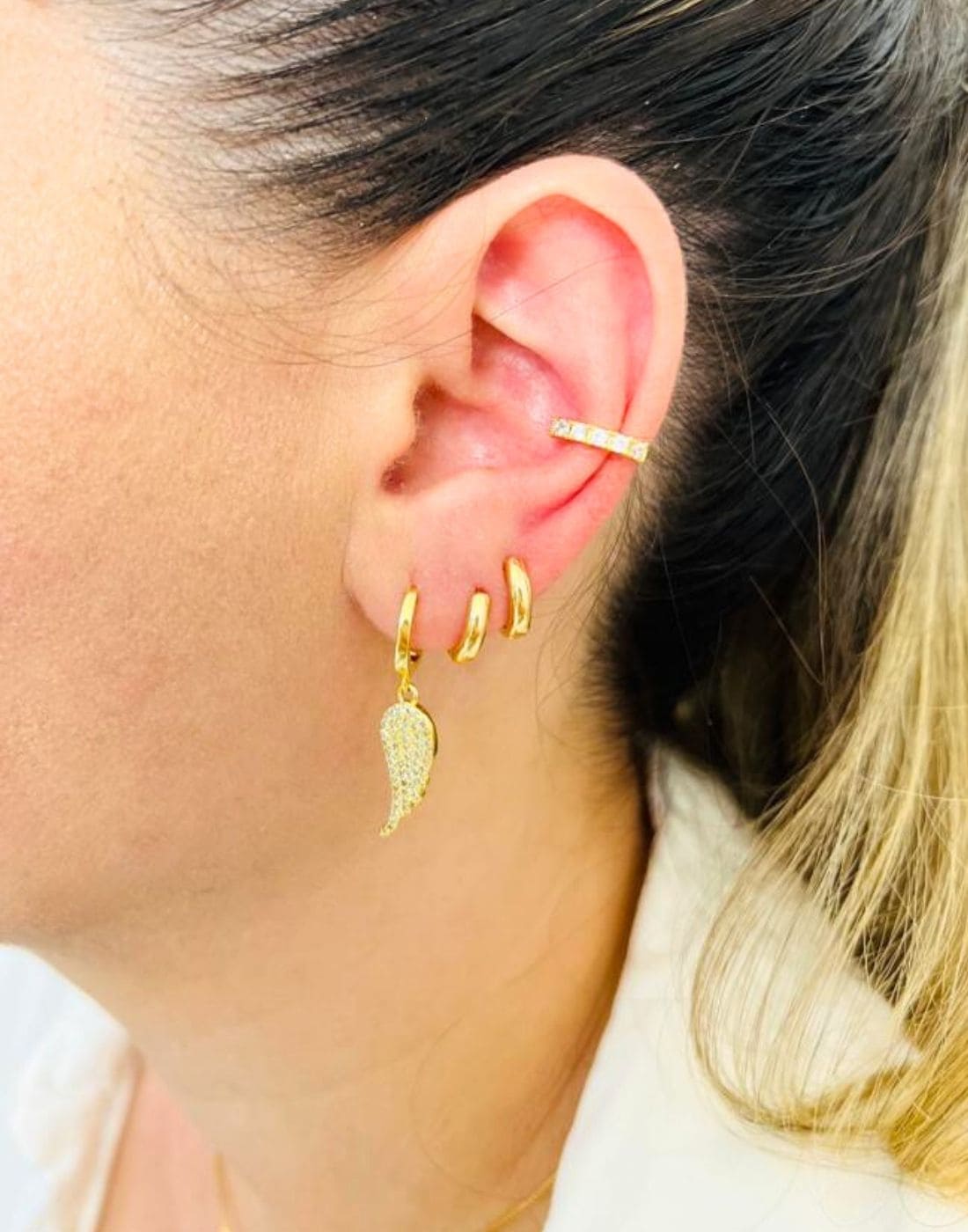 Brinco Asa de Anjo Cravejado de Zircônia Folheado a Ouro 18K