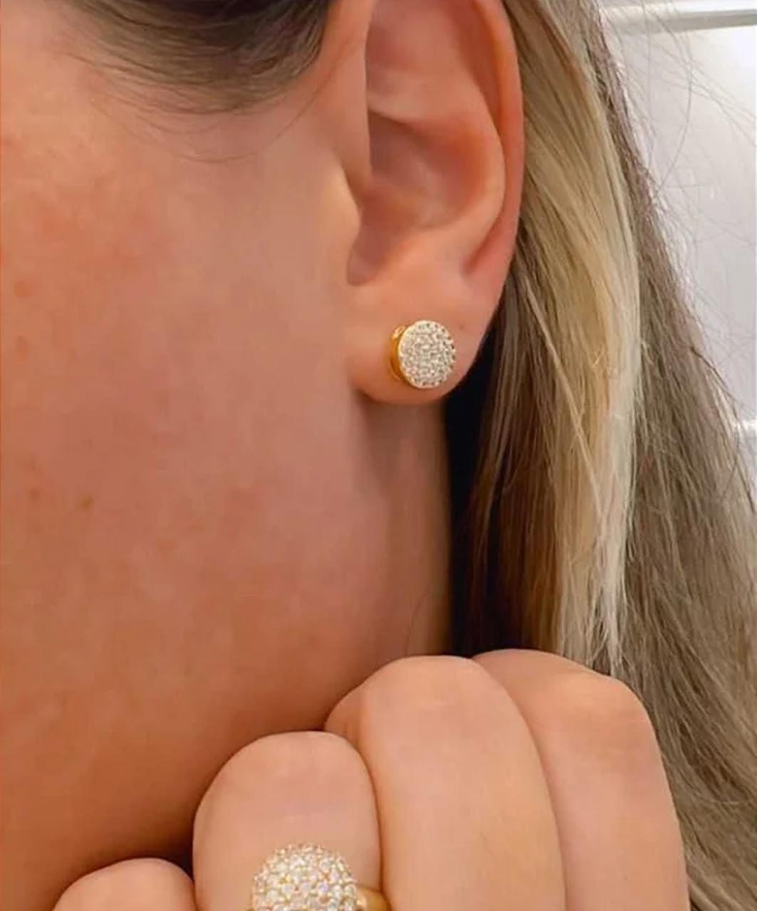 Brinco Chuveirinho Redondo Cravejado de Zircônia Folheado a Ouro 18K