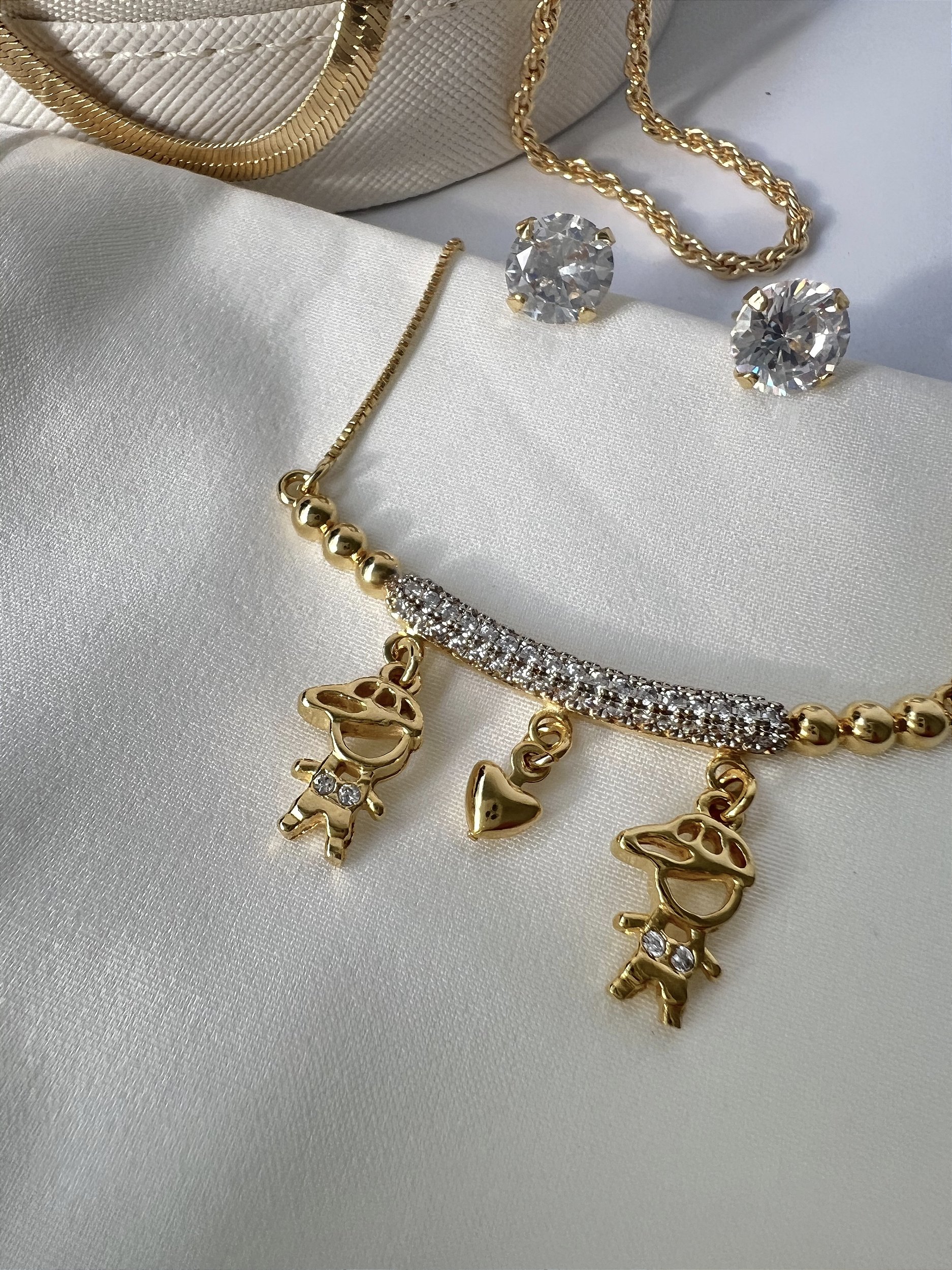 Colar Filhos dois meninos banhados a ouro 18k