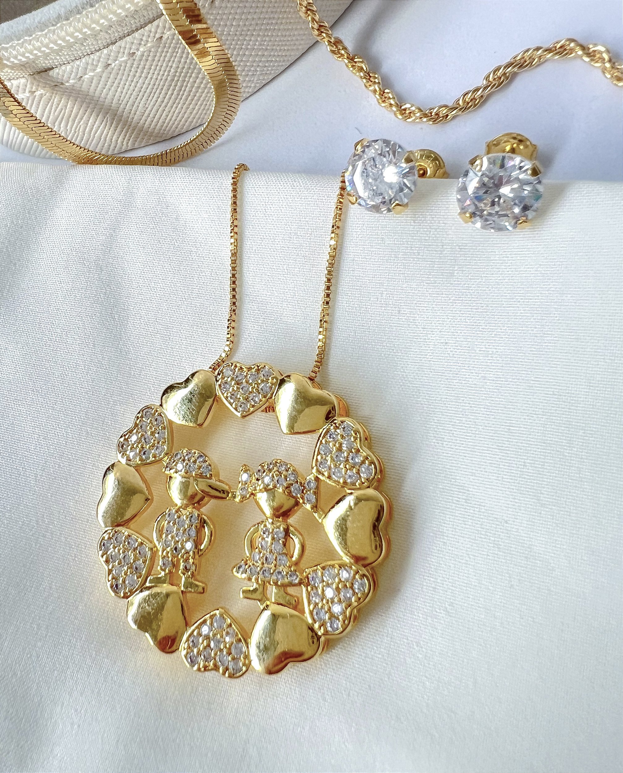 Colar Filhos casal (menino e menina) banhado a ouro 18k