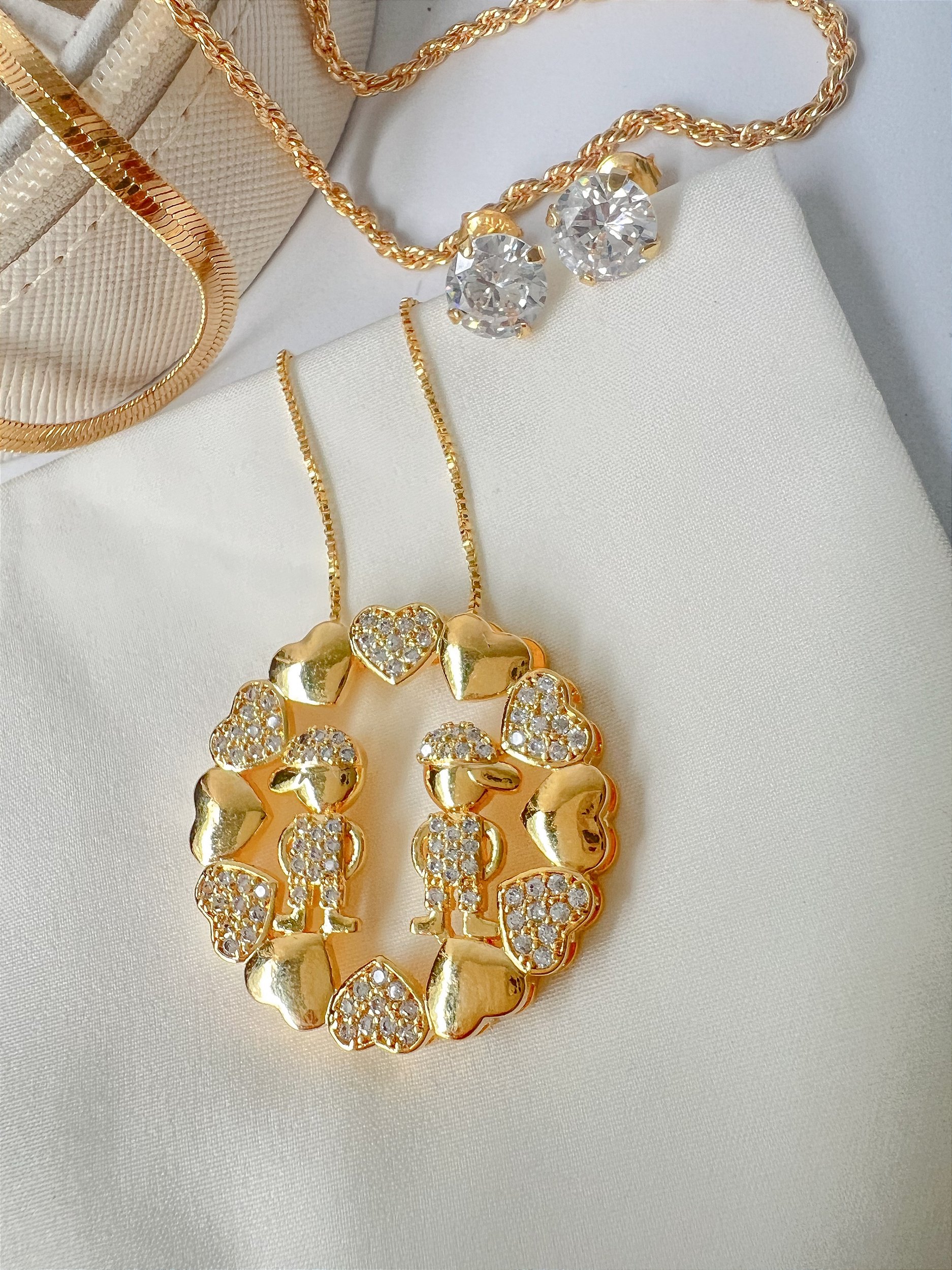 Colar Filhos Dois Meninos banhados a ouro 18k.