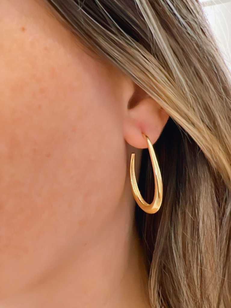 Brinco Argola Lisa Oval Folheada a Ouro 18K